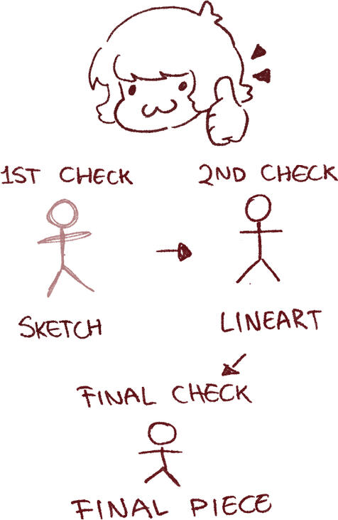 if corrections are needed, they will be applied for free and the sketch will be sent again for an aditional check until the client feels satisfied before the next step